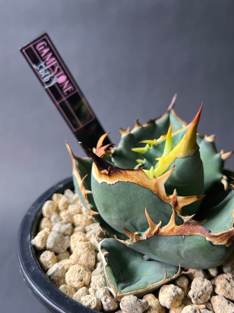 アガベ ハイブリッド ネバデンシス x ブラックアンドブルーAgave nevadensis × titanota black&blueジェレミー氏輸入株の子株販売になります。※画像3.4枚目に写っている子株の販売です。※hidden agaveタグはつきません。親株は青白い葉に黒い棘が特徴の期待株になります。【発送】発送直前に取り外し、メルカリ便にて抜き苗で送付します。【状態】・写真にて確認お願いいたします。・生き物ですのでご到着までの間でも日々変化していくことご了承ください。\r・素人栽培、素人発送ですのでやけ、傷、棘の折れなどあるかもしれません。・なお写真と実物では見え方が違う場合があります。以上をご了承いただける方のみのご購入をよろしくお願いいたします。\r\r\r#観葉植物\r#塊根植物\r#多肉植物\r植物の種類...アガベ品種名···その他チタノタ