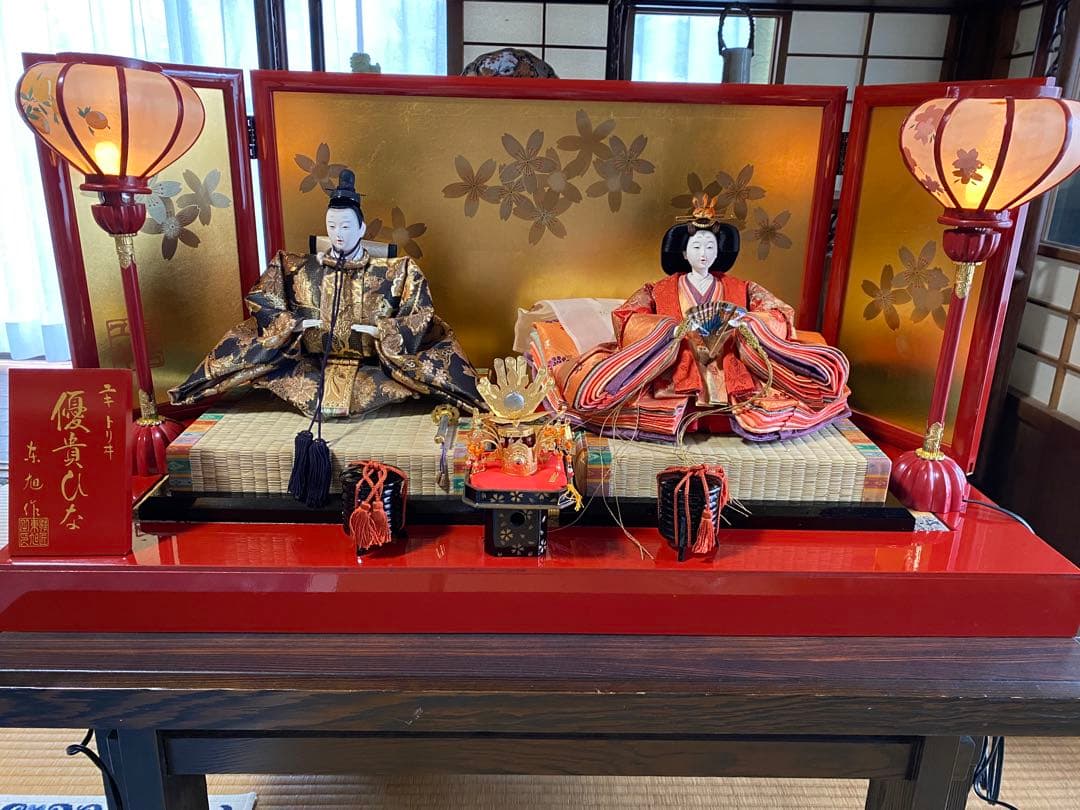 雛人形小出松寿作□内容お雛様お内裏様玉台 2台人形の小物作者の木札人形は木箱に入っています。その下にその他のものが入っています。傷や汚れは見る限りないですが、個人宅で飾っていました。お雛様とお内裏様が座る玉台2台分の横幅56cm お雛様の奥行き28cm段ボール 横52cm*高さ37cm*奥行き40cmデパートで購入出し入れはいつも手袋をしていました。写真撮りのため即席でピアノの椅子に飾っていますが時期にはちゃんと安定したところに飾っていました。