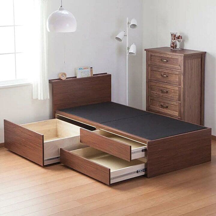 - 無駄なデザインは一切ないシンプルさが気に入って購入しました!ブラウン色でとても落ち着いている雰囲気になります。ヘッドフレームが直線なので、厚めのマットレスでも違和感なく合いました。もちろんローベットタイプなのでマットレスは厚めでない方がいいと思いますが…。若干寸法が異なるマットレスにも対応できるのでいいと思いますよ。